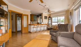 Presentamos este amplio apartamento en planta baja que hace esquina en el edificio, situado en la Playa del Acequión, Torrevieja.