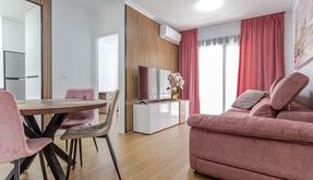 El piso, construido en 1996, ha sido meticulosamente reformado para garantizar un espacio moderno y acogedor para sus nuevos propietarios. Ofrece una superficie de 85 m² distribuidos de manera funcional para maximizar el confort y la usabilidad de los espacios. Consta de 3 dormitorios, perfectos para acomodar a una familia o como un espacio extra para visitas. La decoración y el diseño interior reflejan un estilo contemporáneo que combina notas de sobriedad y elegancia, proporcionando una atmósfera tranquila y acogedora en todo el piso.
