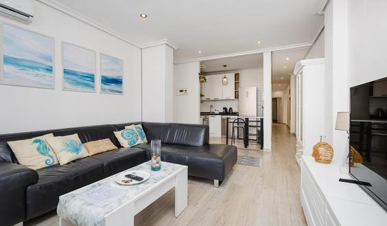 Propiedades en Torrevieja. Zona de la Playa de los Locos, 3 dormitorios, 92 m², España. Piso en venta perfecto para disfrutar de la vida costera que ofrece esta encantadora ciudad de la Costa Blanca. Este piso remodelado, construido en 1996, está a solo 300 metros del mar, lo que permite disfrutar del cálido sol mediterráneo y las refrescantes brisas marinas.
