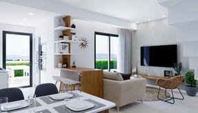 Complejo residencial de nueva construcción de pareados y bungalows situado en Los Balcones con vistas al lago rosa.