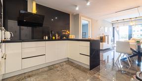 Spanning 76 m², the apartment is designed to maximize both comfort and functionality. With two spacious bedrooms and two well-appointed bathrooms, the space is ideal for couples, small families, or even as a holiday retreat. The open-plan living and dining area welcomes you with ample natural light streaming through large windows, creating a warm and inviting atmosphere.