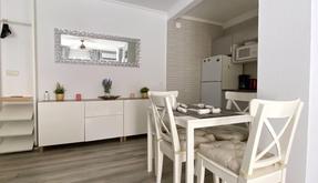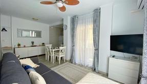 The apartment includes one comfortable bedroom, thoughtfully designed for relaxation, and a bathroom that has been tastefully revitalized. Each area of the apartment is maximized for efficiency and ease, ensuring your living experience here is both enjoyable and convenient. The living room extends onto a private terrace, an inviting space to unwind or entertain, allowing you to embrace the warm Spanish evenings.