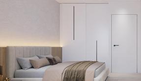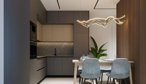 The apartment includes a modern kitchen that is well-integrated into the living area, offering efficiency and style with the latest appliances and fittings. This streamlined design supports the overall aesthetic of fresh simplicity, indicative of contemporary Spanish design trends.