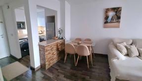 Entering this Torrevieja real estate, you will find a layout that maximizes the use of space while offering a cozy and intimate environment. The apartment boasts a well-appointed living area, perfect for relaxation and entertainment. Light fills the interior, thanks to well-placed windows that not only illuminate the living spaces but also offer a refreshing ambiance, blending the outdoor and indoor experiences seamlessly.