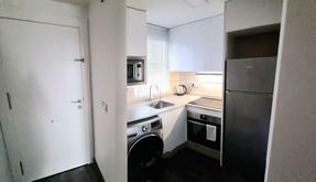 The kitchen area is integrated in a way that supports ease of use, making meal preparations a joy rather than a chore. Its potential for customization allows you to influence the space to suit your culinary preferences. Adjacent to the main living area, the bathroom is elegantly designed, providing a practical and private retreat in the home.