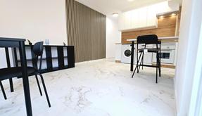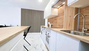The apartment’s kitchen is equipped with modern appliances and fixtures, ensuring you have everything you need to prepare your favourite meals. The functional layout allows for easy movement and accessibility while cooking or entertaining guests. This kitchen space ties in conveniently to the rest of the apartment's open-plan design, enhancing its spacious feel and allowing natural light to fill the home. There is also a well-maintained bathroom with contemporary finishes, offering both style and practicality.