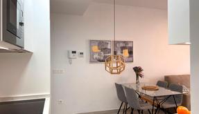 Upon entering the apartment, you are greeted by an open-plan living and dining area that seamlessly integrates with the kitchen, promoting a fluid and social living environment. The kitchen itself is fully fitted, featuring modern appliances and ample storage, catering to both everyday cooking and hosting needs. Large windows allow natural light to flood the space, enhancing the warm and welcoming ambiance that is perfect for relaxation or entertaining guests.