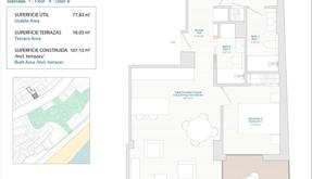 3 bedrooms, 2 bathrooms, built-up area 77 m2, terrace 16 m2, parking, storage room, ascensor, air-conditioned, fitted wardrobes in the bedrooms.