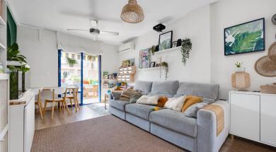 A contemporary bathroom with modern amenities provides convenience, complementing the practical layout of this penthouse. The property’s air conditioning system ensures a comfortable indoor climate, essential for the warm Spanish summers. Moreover, a dedicated storage room adds to the utility of the home, providing additional space for belongings without encroaching on the living areas.