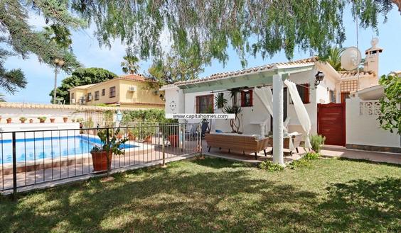 The exterior of the property is equally enticing, boasting a swimming pool that promises refreshing dips under the warm Spanish sun. Imagine the joy of leisurely afternoons spent poolside, surrounded by the gentle rustle of palm leaves, with the ocean within earshot. The villa's design makes outdoor entertaining a breeze, providing the perfect setting for barbecues and social gatherings with friends and neighbors.
