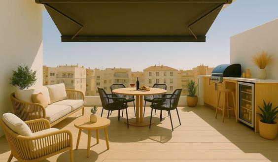 10 современных и эксклюзивных апартаментов с 3 спальнями и 2 ванными комнатами, кухня открытого плана с гостиной, встроенные шкафы, большие террасы.