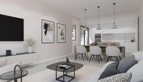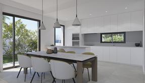 3 спальни, 2 ванные комнаты, застроенная площадь 100 м2, участок 400 м2, терраса 123 м2, парковка, есть бассейн, кладовая комната, встроенные шкафы в спальнях, дополнительная подготовка для установки кондиционера.