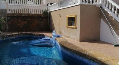 Town house for sale in Spain. Orihuela Costa, La Zenia area. The object is in the conditions "Ready to live", project of 1989, distance to the sea 100 meters. 3 bedrooms, 3 bathrooms, built-up area 245 m2, plot 600 m2, parking, sea views, swimming pool, storage room, fitted wardrobes in the bedrooms.