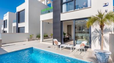 Buy a Villa in Orihuela Costa, Spain, specifically in the sought-after Cabo Roig area and experience a harmonious blend of luxury and convenience. This stunning property, constructed in 2016, lies a mere 500 meters from the inviting sandy shores, offering breathtaking sea views that define the idyllic Spanish coastal lifestyle.